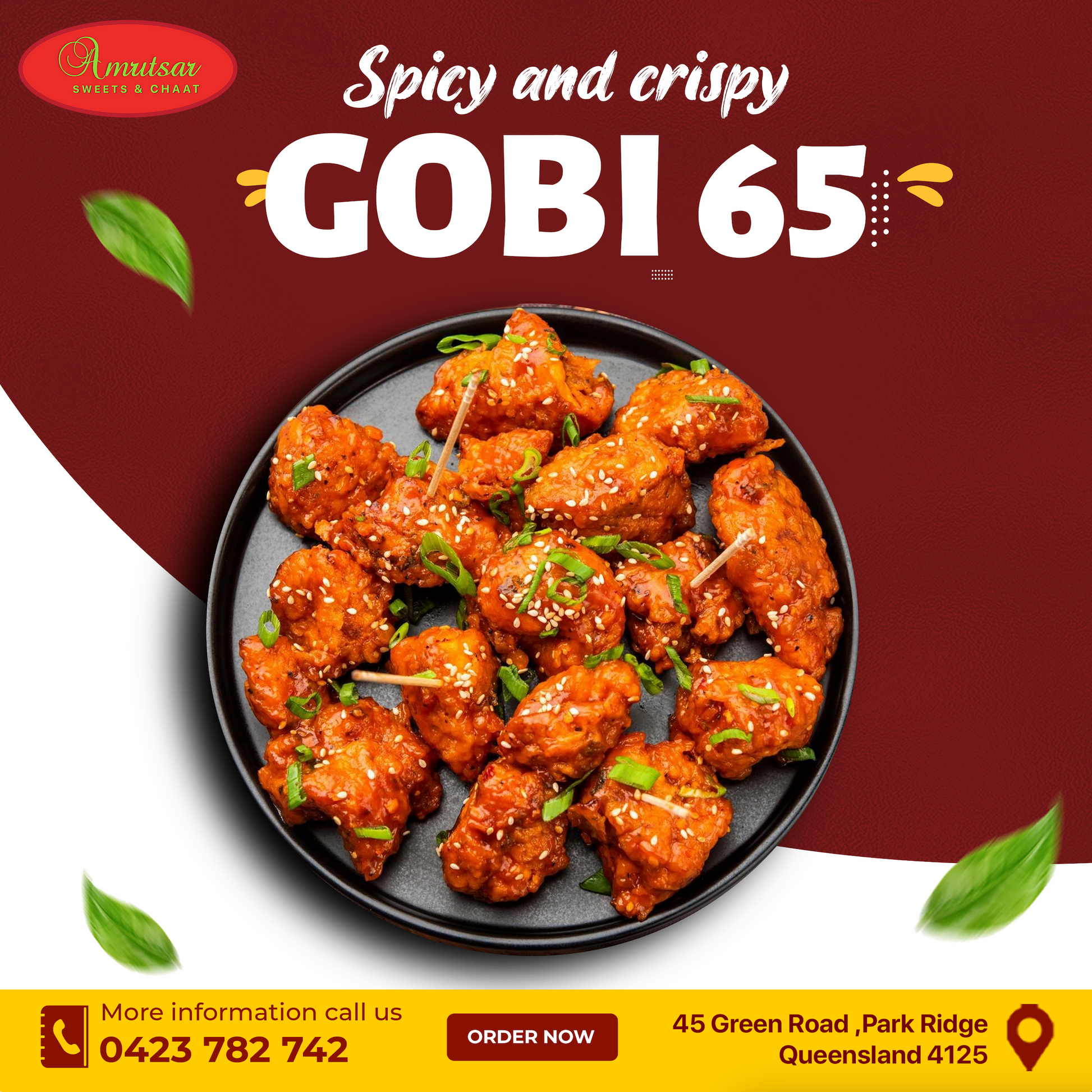 Indulge in the spicy, crispy goodness of Gobi 65 at Amritsar Sweets & Chaat, Brisbane & Logan’s premier destination for authentic Indian street food.