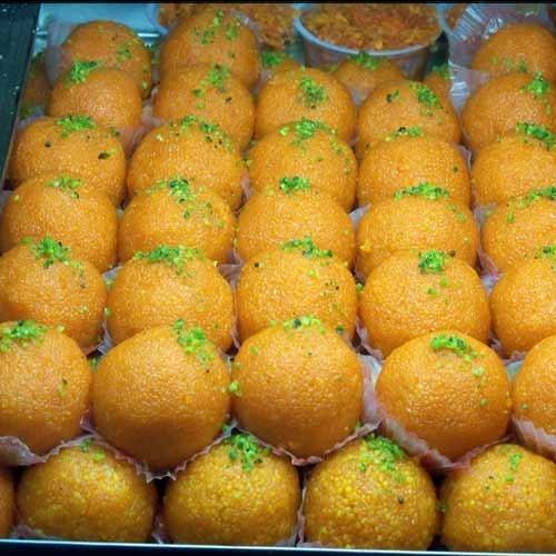 These vibrant, golden ladoos are expertly crafted from fine gram flour and sweetened with aromatic cardamom, creating a melt-in-your-mouth experience that captures the essence of traditional Indian sweets.