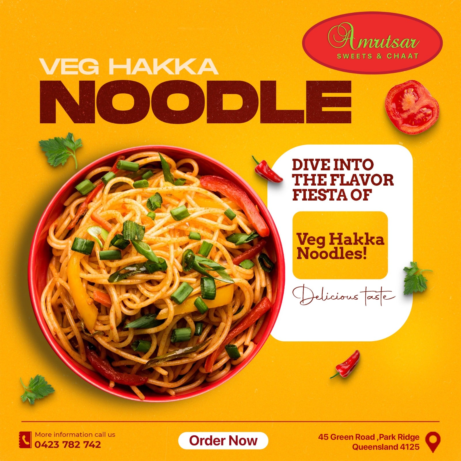 Experience the vibrant taste of Veg Hakka Noodle at Amritsar Sweets & Chaat, Brisbane & Logan's top destination for authentic Indian street food.